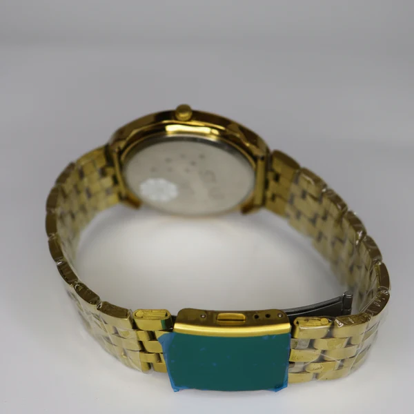 Yeh Luxury Gold Men Wrist Watch high-quality gold-tone finish ke saath aati hai jo long-lasting shine provide karti hai. Black dial par gold hour markers aur sleek hands isse stylish contrast dete hain.