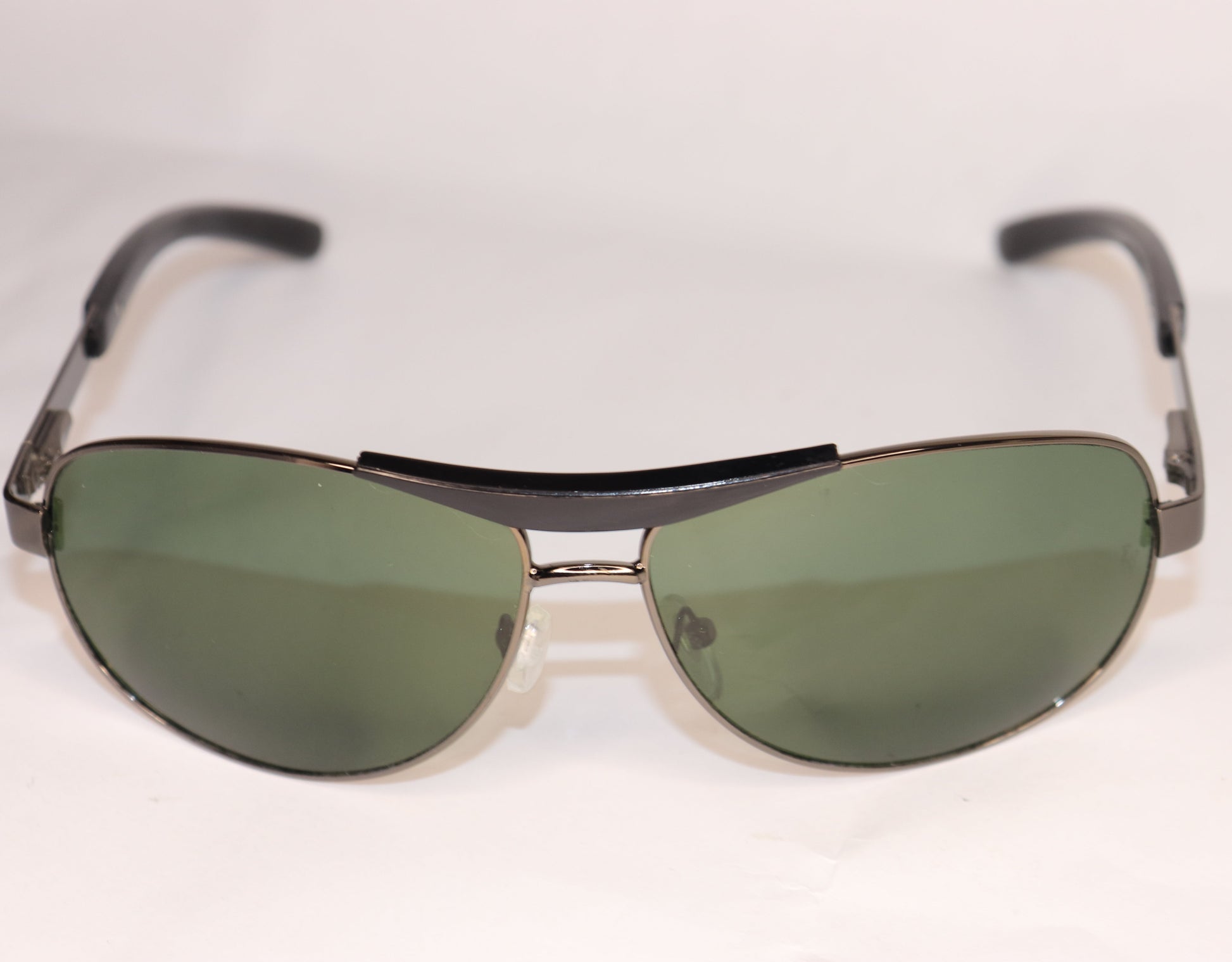 Sunglasses with black frame and green lenses